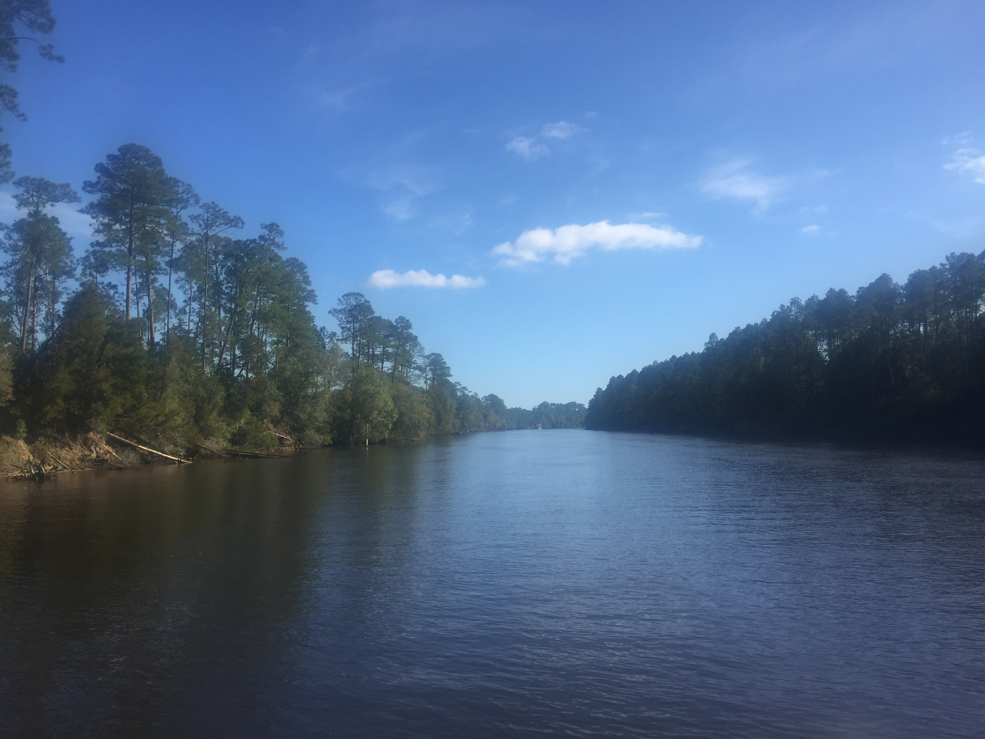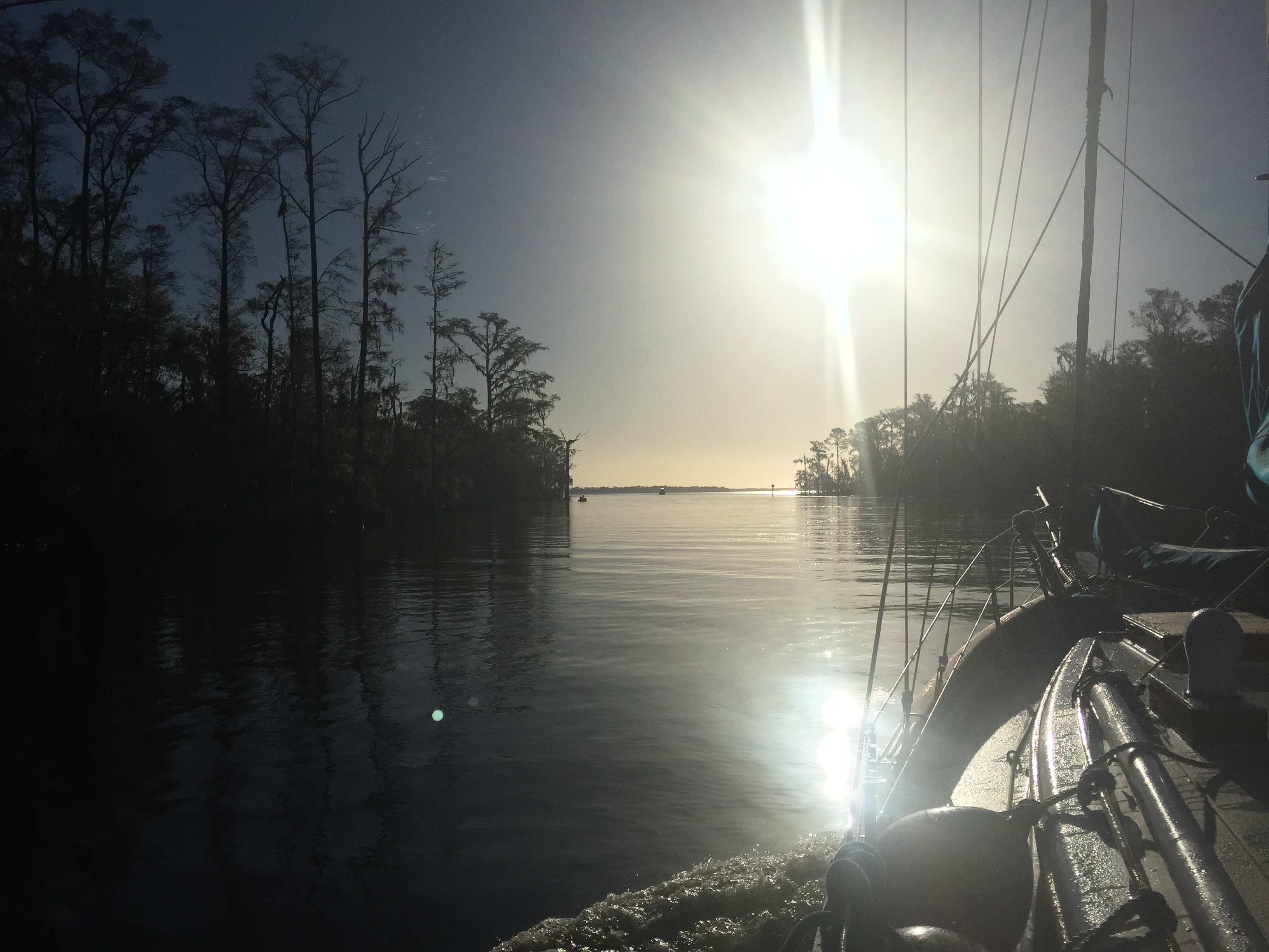 After two nights we headed out for White City, a city park with FREE docks, bathrooms, power and hot weather but no showers or wifi/cell signal. The IWW has been river-like and narrow with mostly cypress swamp shores but every so often it opens up to a bay or lake that feels like it could be anywhere in Michigan on an inland or great lake. We are back on EST and it is getting dark later, a real plus!